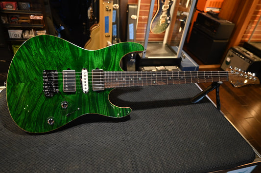 Suhr Custom Modern Carved Top Set Neck Waterfall Burl - Trans Green Guitar #5121
