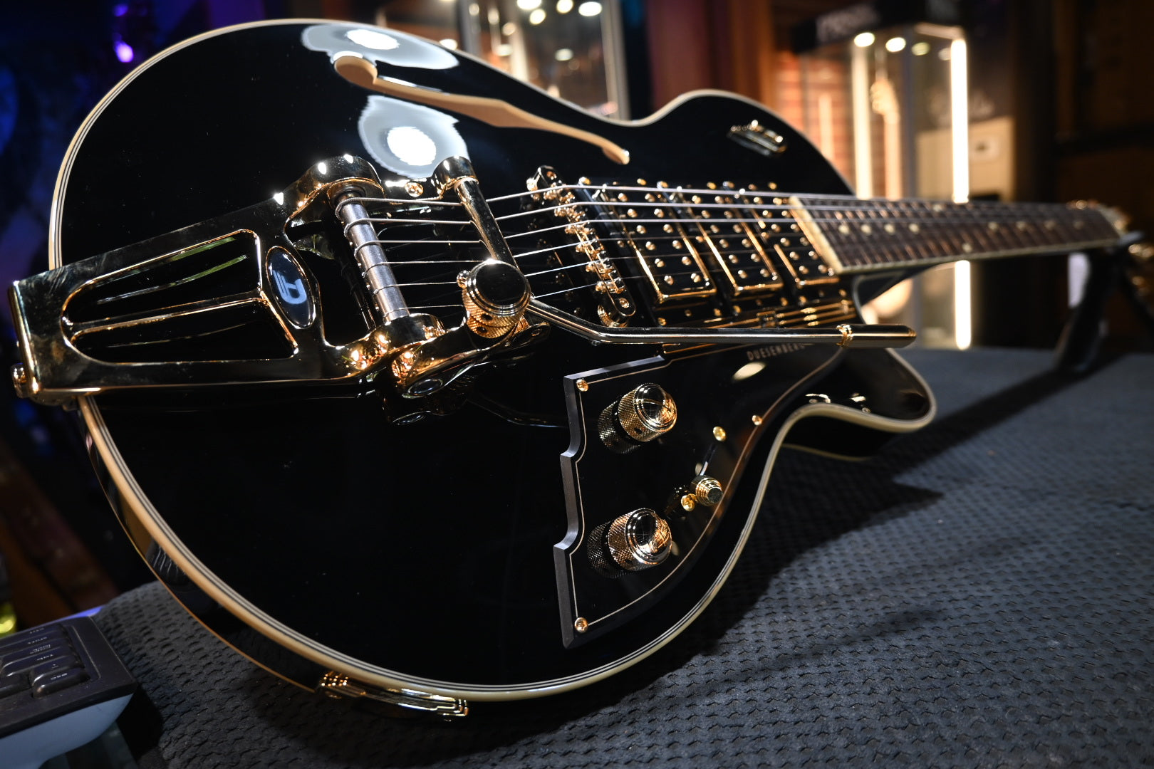 For sale is a brand new Duesenberg Starplayer TV Custom in Black. Looks absolutely fantastic with gold hardware. Comes with Duesdenberg OHSC. Danville Music is an Authorized Duesenberg Dealer, you can buy with confidence and the instrument comes with the full Duesenberg lifetime Warranty. We inspect and professionally set up every instrument we sell so you can buy with confidence, helping you fall in love with your new instrument. Feel free to message us with any questions.