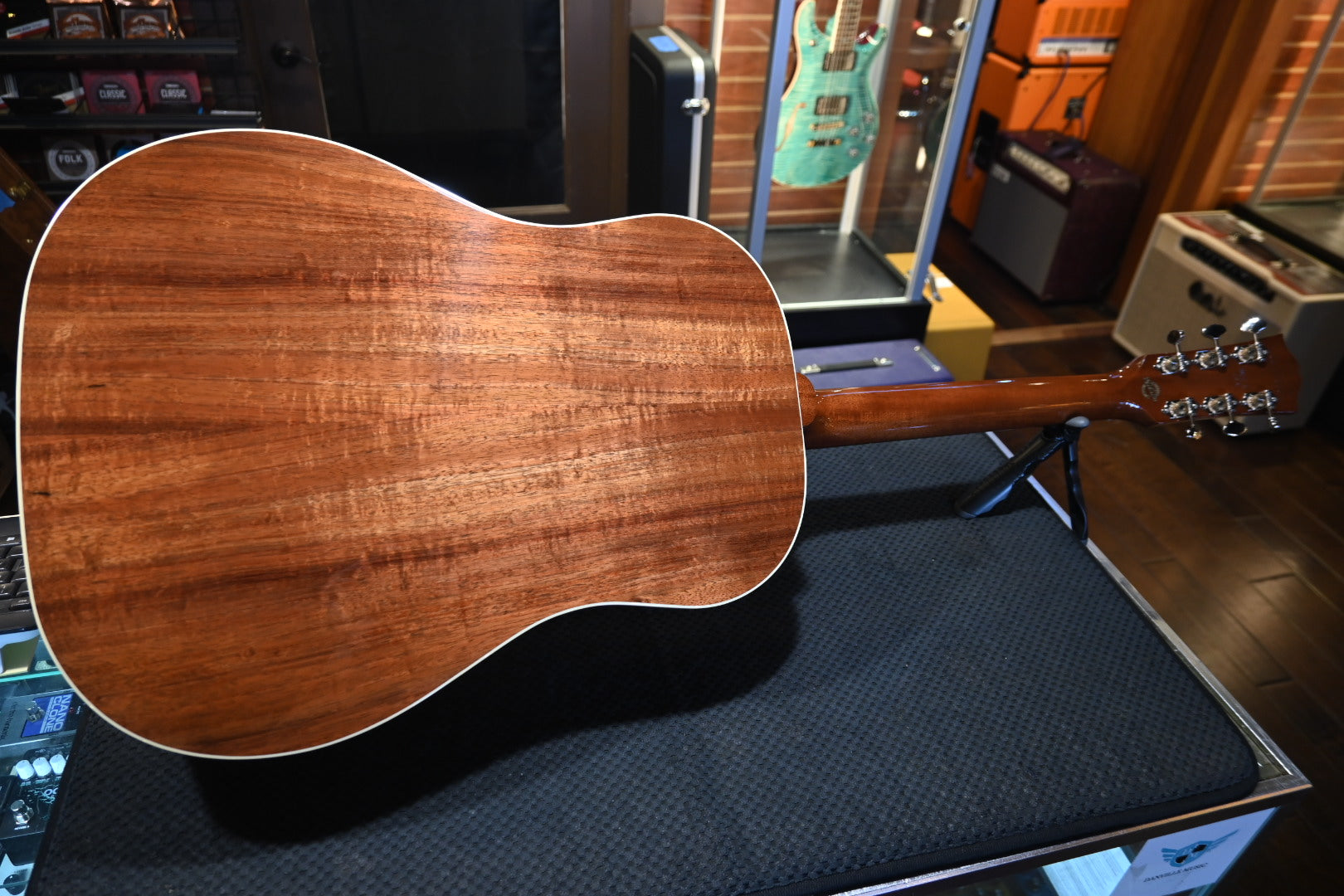 Turning the traditional J-45 formula on its head, the Gibson Acoustic J-45 Koa/Carpathian Spruce beams with an exotic arrangement of prestigious timbers. This limited-edition acoustic-electric’s Carpathian spruce top — a particularly sought-after strand of European spruce — lays a crisp and responsive groundwork, coupled with traditional scalloped X-bracing to deliver exceptional headroom and a vast dynamic range. Carpathian spruce’s powerful projection and natural stiffness often garner comparisons with Gibson’s golden-age top wood of choice, Adirondack spruce. However, this J-45’s brilliantly figured AA koa back and sides are what truly separate this instrument from a standard Gibson slope-shouldered dread, tempering the J-45’s thump with a brighter and more balanced character. A speedy SlimTaper mahogany neck provides smooth navigation over this J-45’s final tonewood tweak — a stunning striped ebony fingerboard. You also get road-proven LR Baggs VTC electronics and top-shelf Grover tuners. Simply put, you’ve never heard (or seen!) a Gibson quite like the Gibson Acoustic Koa/Carpathian Spruce.