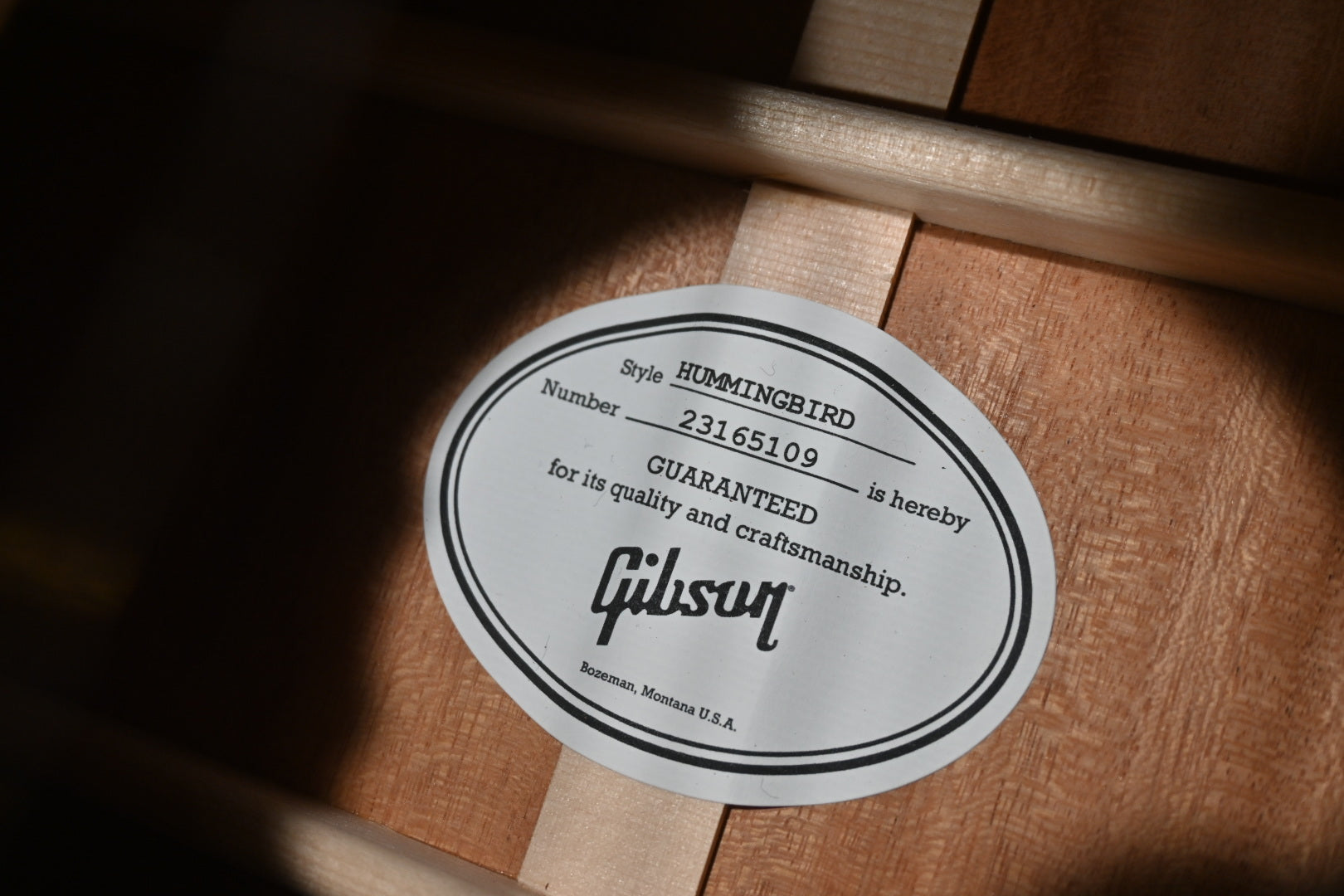 Much of the Hummingbird’s appeal lies in its versatility. No matter how you attack this flat-top, it pumps out rich, deep tones, and is equally at home strumming first-position chords as it is taking the spotlight for picking lead lines. Its spacious mahogany body and sweet, select Sitka spruce top are more than capable of nailing down the rhythm in the hands of a rock and roll sideman or accompanying the most nuanced performance under the fingers of today’s alternative singer-songwriter. The Hummingbird's mahogany neck has a comfortable rounded profile and mother of pearl parallelogram inlays. This 'bird has a TUSQ® nut, saddle, and bridge pins, Grover® Rotomatic® tuners, the iconic Hummingbird™ graphics on the pickguard, and is equipped with LR Baggs® VTC electronics, so it's ready to plug in on stage or in the studio. A Gibson hardshell case is included.