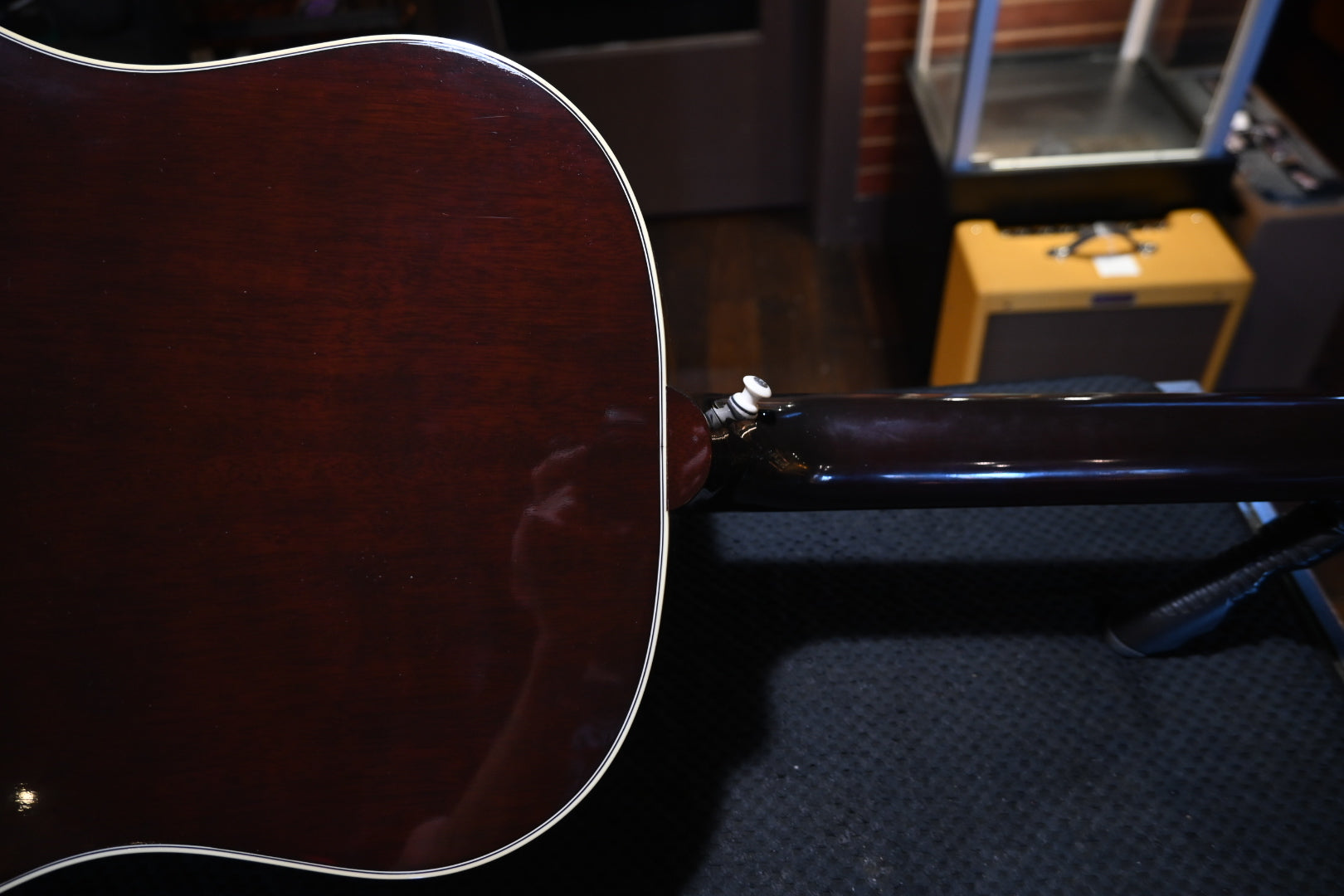 For sale is a used 2012 Gibson Southern Jumbo Woody Guthrie in a Vintage Sunburst finish. Guitar sounds amazing but does show some signs of wear such as some cloudiness in the finish (as expected of nitro) and some small scratches here and there, no major dings or dents. Comes with OHSC. We inspect and professionally set up every instrument we sell so you can buy with confidence, helping you fall in love with your new instrument. Feel free to message us with any questions.