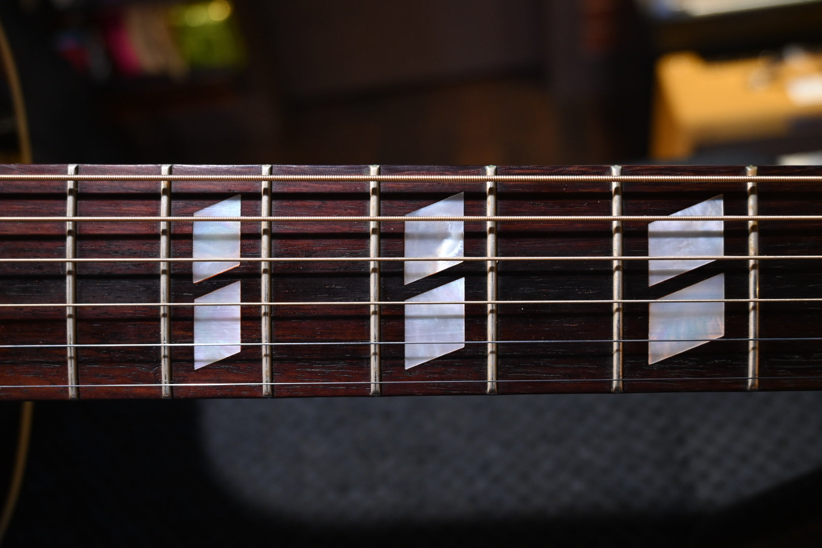 Guthrie was serious about his music, and this is a guitar for the serious folk musician. Its sweet, warm tone comes from a Sitka spruce top on select Honduran mahogany back and sides. 6-ply top binding and 4-ply back binding, V-shape neck profile, mother-of-pearl parallelogram fretboard inlays, and L.R. Baggs Element electronics make it a beautiful, versatile primary instrument for professional songsmiths.Features