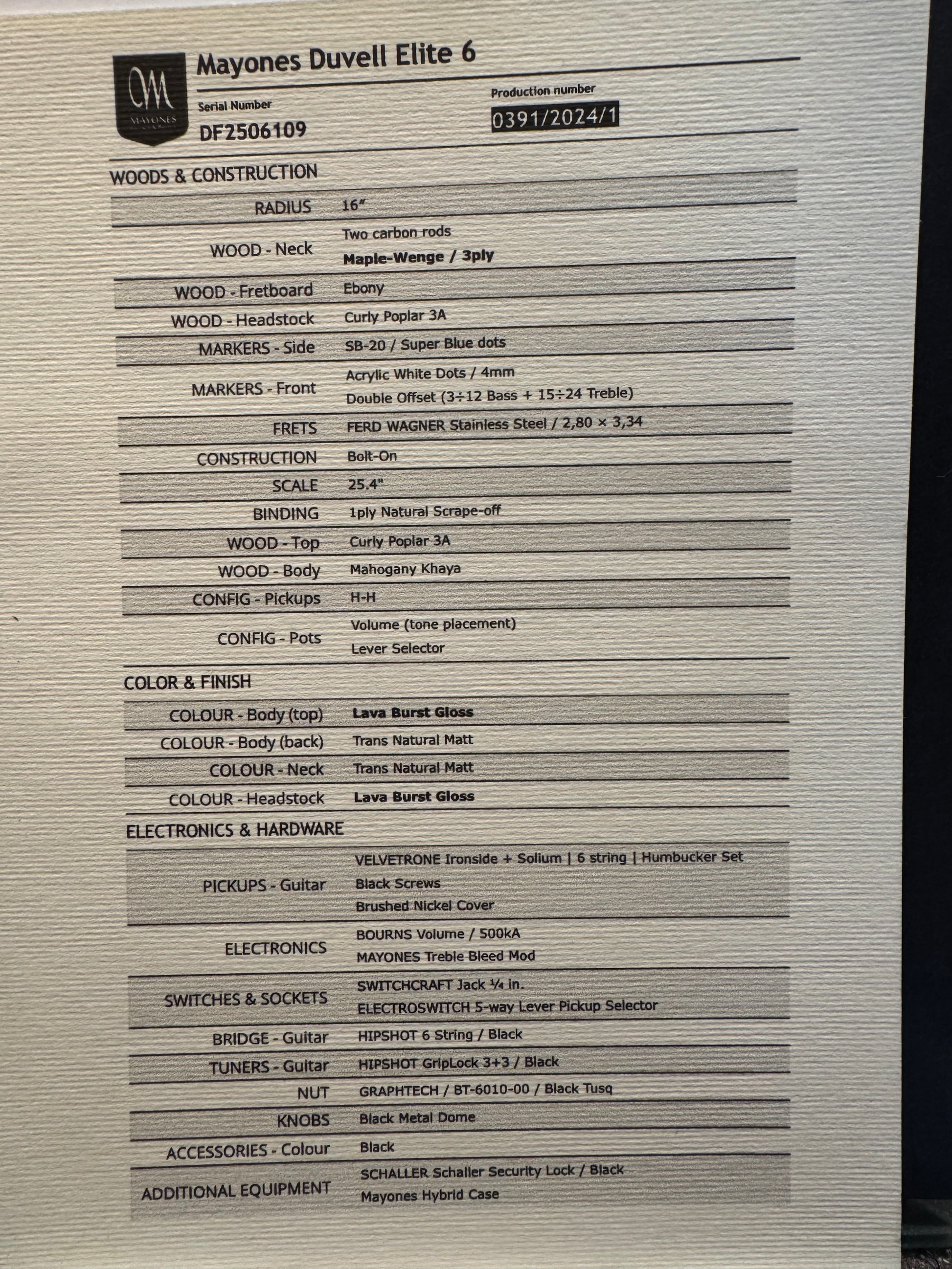 Pickups: Mayones Velvetrone Ironside + Solium 7 String Set