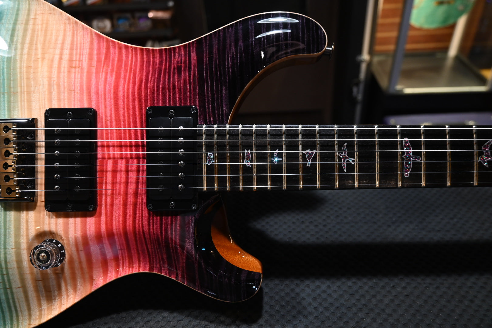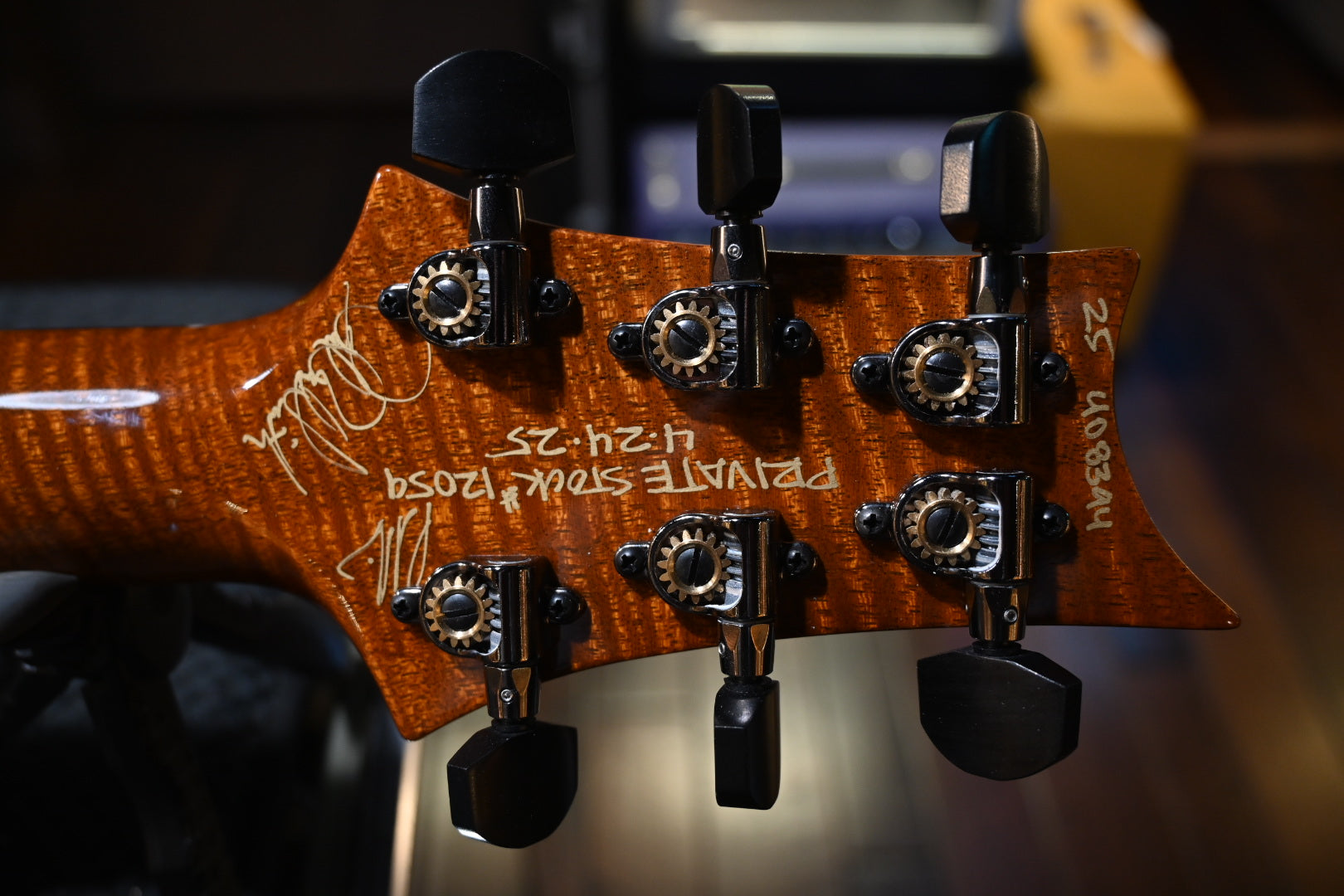 Hardware : Smoked Black Plate Style Bridge, PRS Phase-III set screw locking tuners with Ebony buttons.