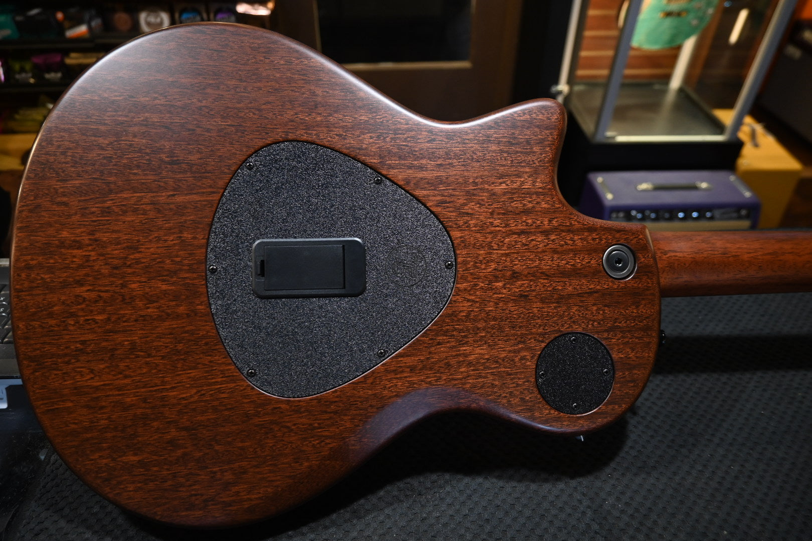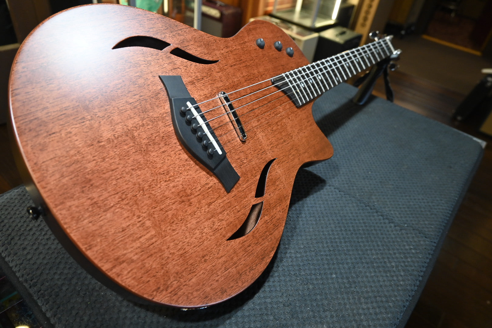 The deep color and rich grain of a mahogany top give the T5z Classic a vintage, earthy character. Distinctive T5z features include a more compact body than the original T5, a 12" fretboard radius, and jumbo frets, which add up to a fast, fluid playing experience that makes string bends fun. Like the T5, the T5z is equipped with a three-pickup configuration of an acoustic body sensor, a concealed neck humbucker, and a visible bridge humbucker, plus five-way switching and onboard tone controls, giving players an incredibly versatile electric/acoustic guitar. Appointments include Small Diamond inlays and nickel hardware, an unbound body and satin classic mahogany finish. The guitar ships in a T5z gig bag.