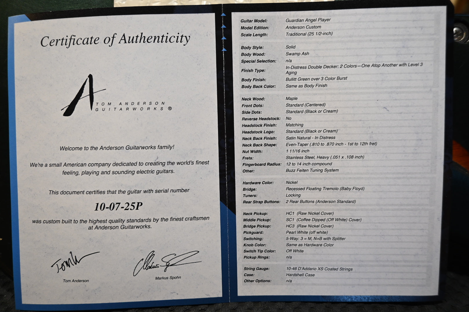 Tom Anderson Guardian Angel Player In-Distress - Bullit Green over 3-Color Burst Guitar #725P