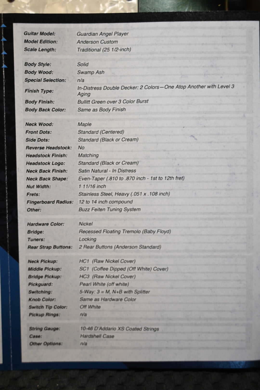 For sale is a brand new Tom Anderson Guardian Angel Player in an sick Bullit Green over 3-Color Burst. One of my favorite Anderson specs of all time. Looks amazing, and features HC1/SC1,HC3 pickups. Just the best. Comes with OHSC. Danville Music is an Authorized Tom Anderson Dealer, you can buy with confidence and the instrument comes with the full Tom Anderson lifetime Warranty. We inspect and professionally set up every instrument we sell so you can buy with confidence, helping you fall in love with your new instrument. Feel free to message us with any questions!